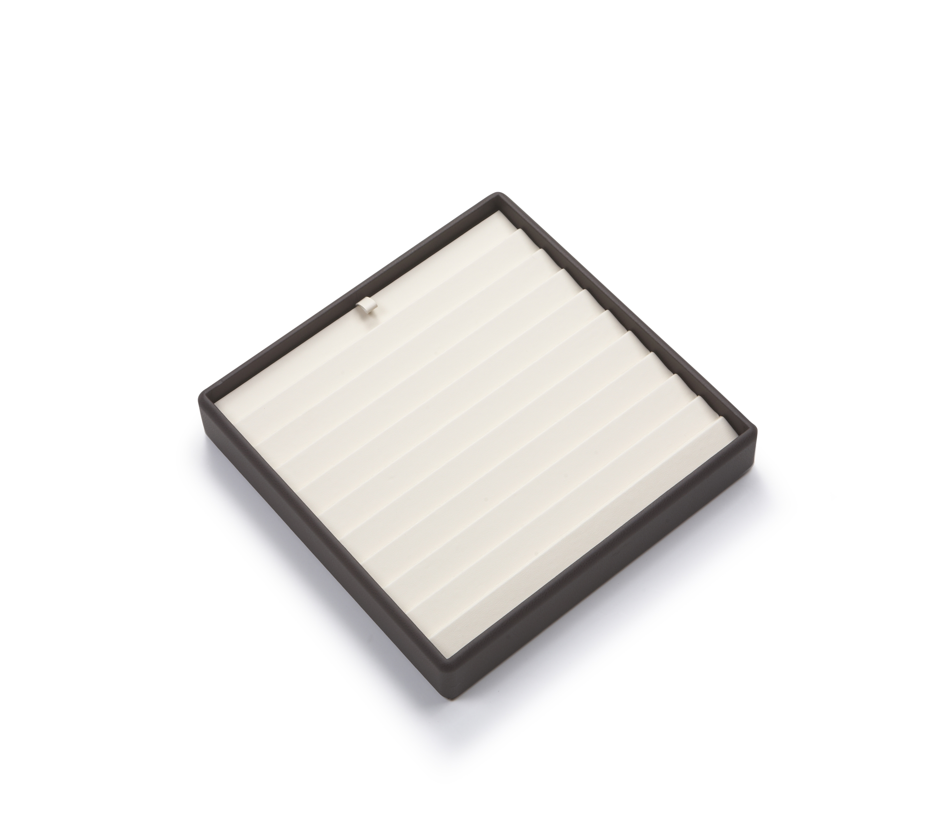Description: Chocolate/Beige Leatherette Stackable 10 Bracet Tray