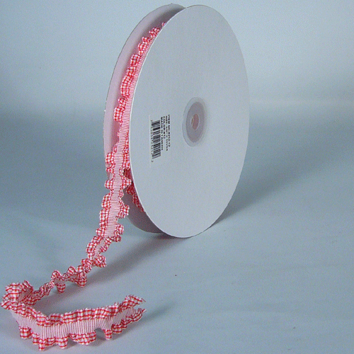 Description: Red Gingham Ruffled Ribbon Stetch Trim Ribbon